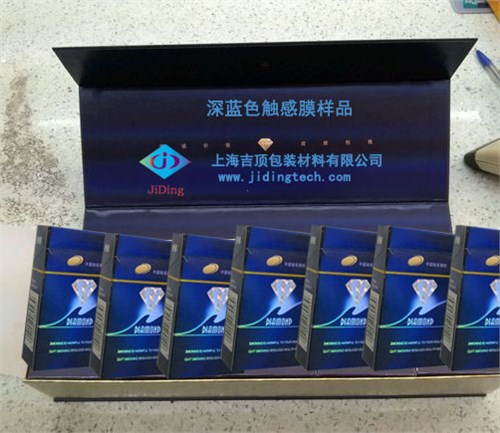 一、预涂红色触感膜简介新型触感膜——上海吉顶包装成功研制新品触感膜。触感膜是本公司采用独特工艺及设备,自主研发,自主创新,新研制的OPP纸塑覆合**薄膜,此薄膜表面具有特殊强烈的丝绒触感。薄膜经红触感处理后,能有效避免后道加工中,因纸张胶印红色时,产生的偏色问题。与纸张覆合后,色调饱和,不掉色。覆膜后,新触感膜表面还能进行烫金,局部上光,丝网印刷,UV印刷等后加工工艺。此功能膜广泛应用于包装盒,图书封面,礼盒,化妆品盒,纸袋,吊牌等包装领域,方便实用,环保。二、触感膜使用方法:在与底纸复合前需涂布一层水胶,烘干后再贴合。(请注意,触感面在表面,请在里面(光面)上胶水,建议选用即用型的水性胶,常规覆哑膜的胶水一般都可以)三、关于样张:此样张是我们的触感膜在白板纸上覆出来的纸样,*供参考。四、关于订购:幅宽在1000mm以内,常规长度:2000米/卷,可按需订制。欢迎来电咨询,洽谈!
