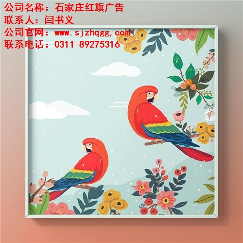 石家庄红旗广告有限公司是一家拥有十五年广告制作经验的公司, 专业从事写真喷绘、艺术品复制,国内外各大博物馆藏画数据收集,,大型展板,X展架、易拉宝、灯箱片,高清写真、(车身贴、玻璃单孔透、彩色条幅、透明贴)户外喷绘、(亚克力、PVC、芙蓉板、双色板等)雕刻、大型UV平板喷绘标识标牌、展览展示等广告工程。