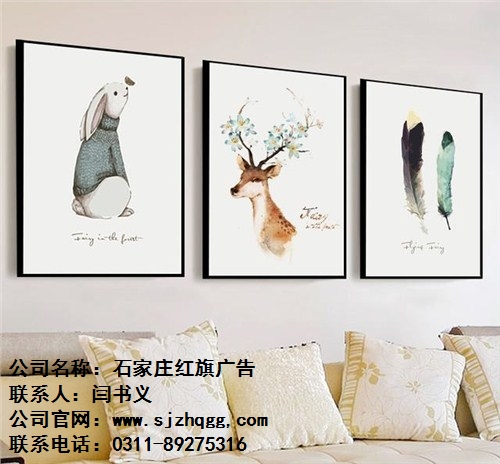 石家庄红旗广告有限公司是一家拥有十五年广告制作经验的公司, 专业从事写真喷绘、艺术品复制,国内外各大博物馆藏画数据收集,,大型展板,X展架、易拉宝、灯箱片,高清写真、(车身贴、玻璃单孔透、彩色条幅、透明贴)户外喷绘、(亚克力、PVC、芙蓉板、双色板等)雕刻、大型UV平板喷绘标识标牌、展览展示等广告工程。