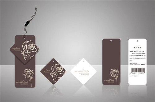 吊牌即各种服饰上吊挂的牌子,包含一些服装材质,洗涤注意事项等信息。从质地上看,吊牌的制作材料大多为纸质,也有塑料的、金属的。另外,近年还出现了用防伪材料制成的新型吊牌。再从它的造型上看,则更是多种多样的:有长条形的,对折形的,圆形的,三角形的,插袋式的以及其它特殊造型的。真是多姿多彩,琳琅满目。